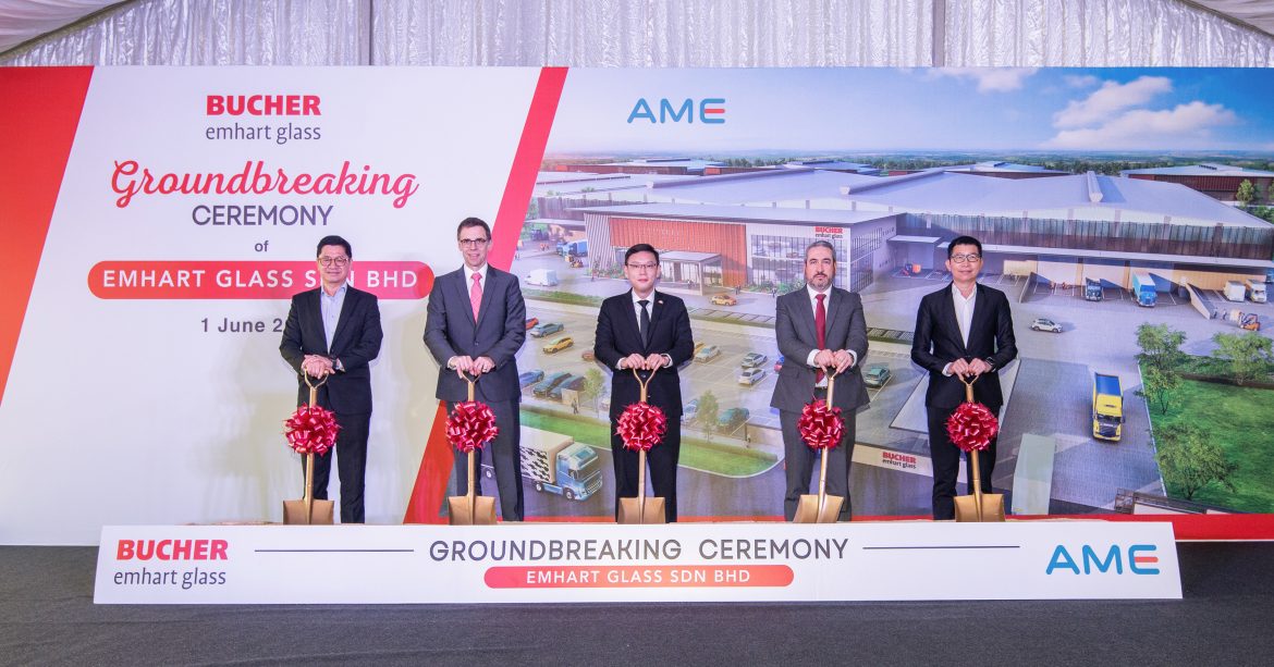 From left: AME Elite group managing director Kelvin Lee Chai, Kümmerle, Lee, Bucher Emhart Glass vice president logistics and manufacturing Juan P. Montes and AME Elite Consortium executive director Simon Lee participating in the groundbreaking ceremony of the Swiss company’s manufacturing facility at i-Park @ Senai Airport City on Thursday.